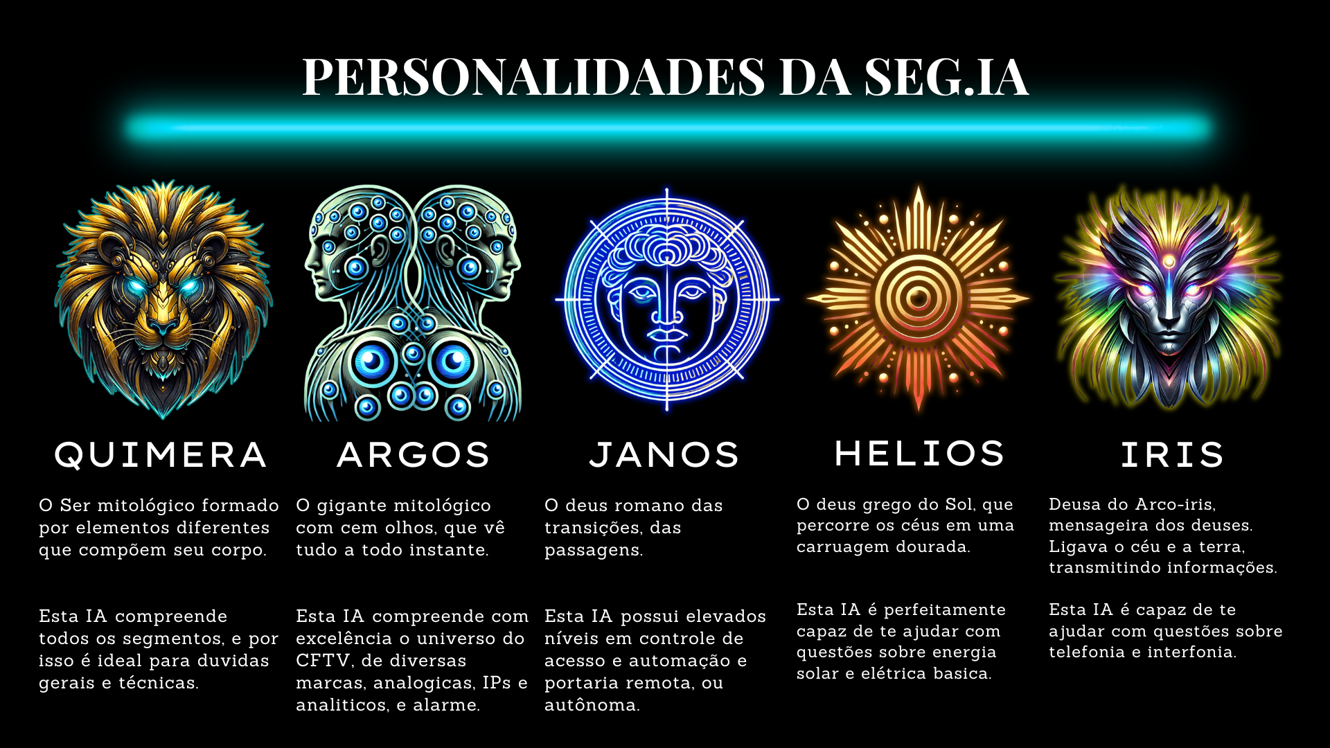 Assinando HOJE a SEG.IA, você terá acesso a todas as personalidades, com acesso pelo PC, ou celular. Interações diárias, comunidade de especialistas de segurança eletrônica, e muito mais.